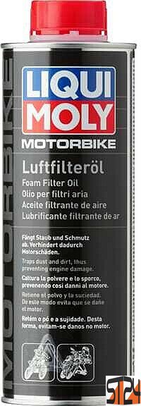 ProduktbeskrivelseLiqui Moly Motorcykel Luftfilterolie er en speciel, klæbende olie udviklet specielt til motorcykelskumluftfiltre (skumfilter). Det sikrer optimal motorbeskyttelse, selv under krævende forhold, ved at forhindre snavs i at trænge ind i indsugningssystemet.