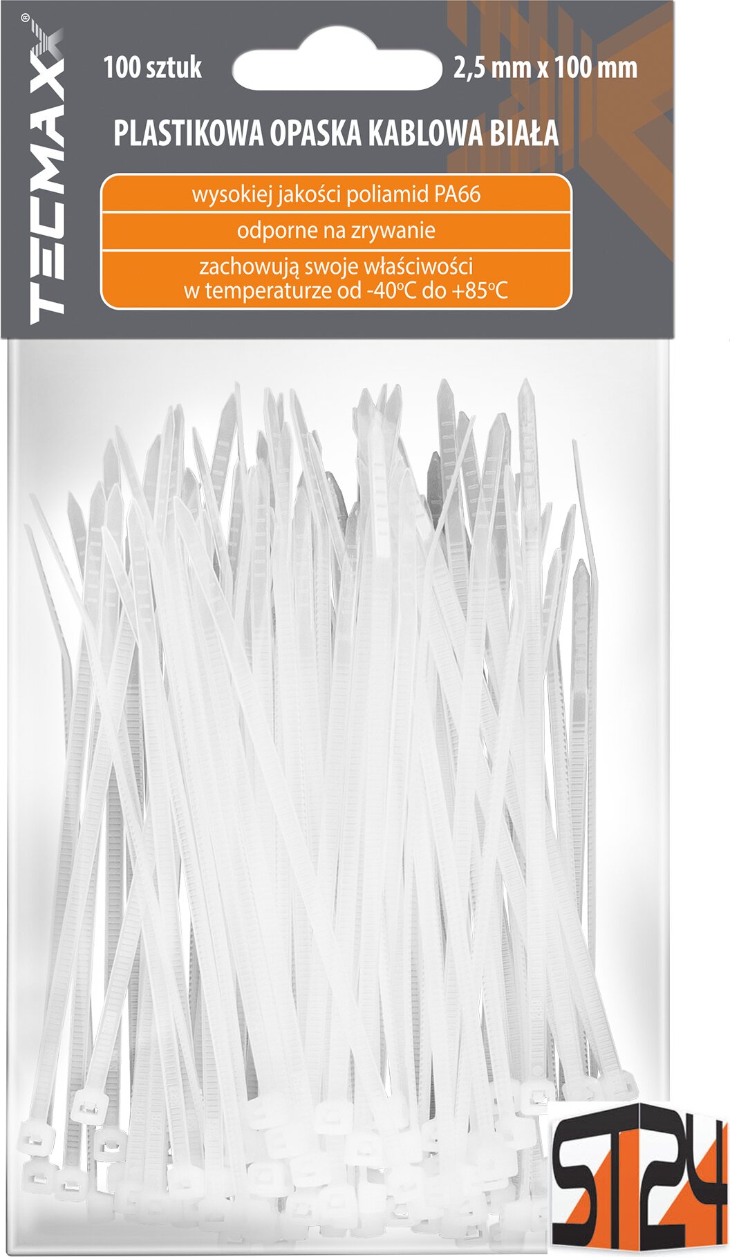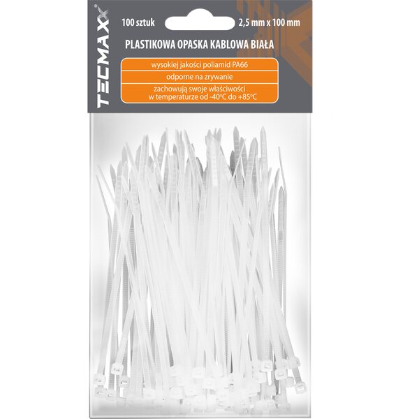 Product descriptionTECMAXX Cable Ties 2.5 mm x 100 mm, white – Precision and reliability for small installations.