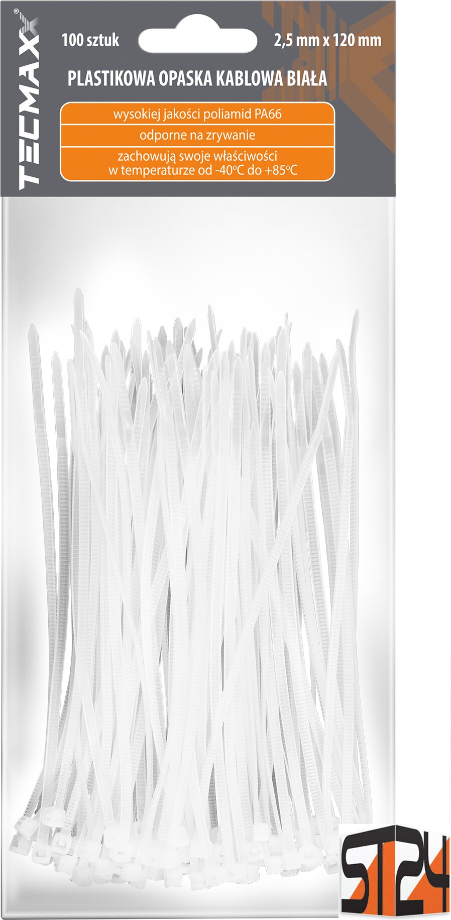 Product descriptionTECMAXX Cable Ties 2.5 mm x 120 mm, white – Reliable durability for securing small items.