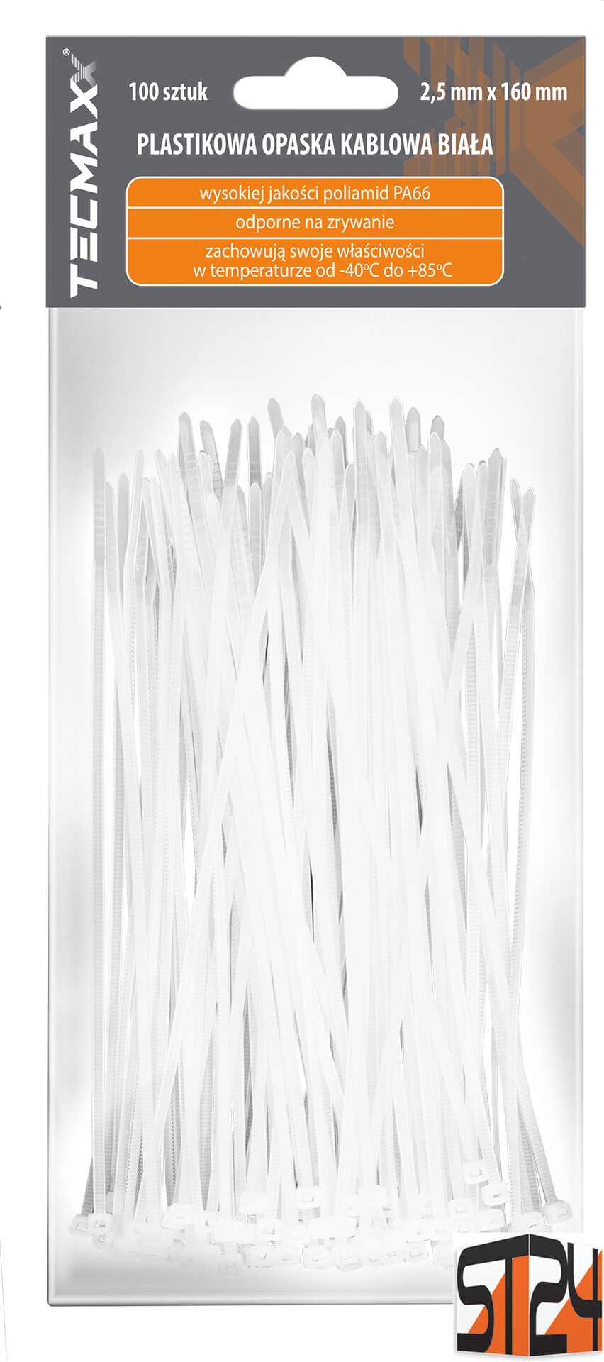 Product descriptionTECMAXX Cable Ties 2.5 mm x 160 mm, white – Optimal length and durability in a narrow size.