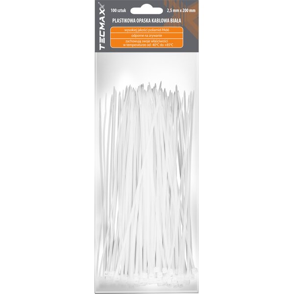 Product descriptionTECMAXX Cable Ties 2.5 mm x 200 mm, white – Maximum length in a narrow and neat profile.