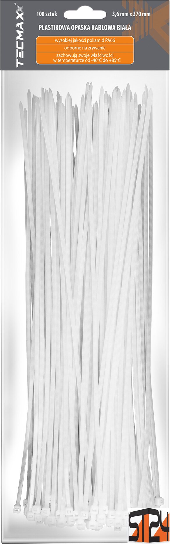 Product descriptionTECMAXX Cable Ties 3.6 mm x 370 mm, white – Maximum length and reliable strength.
