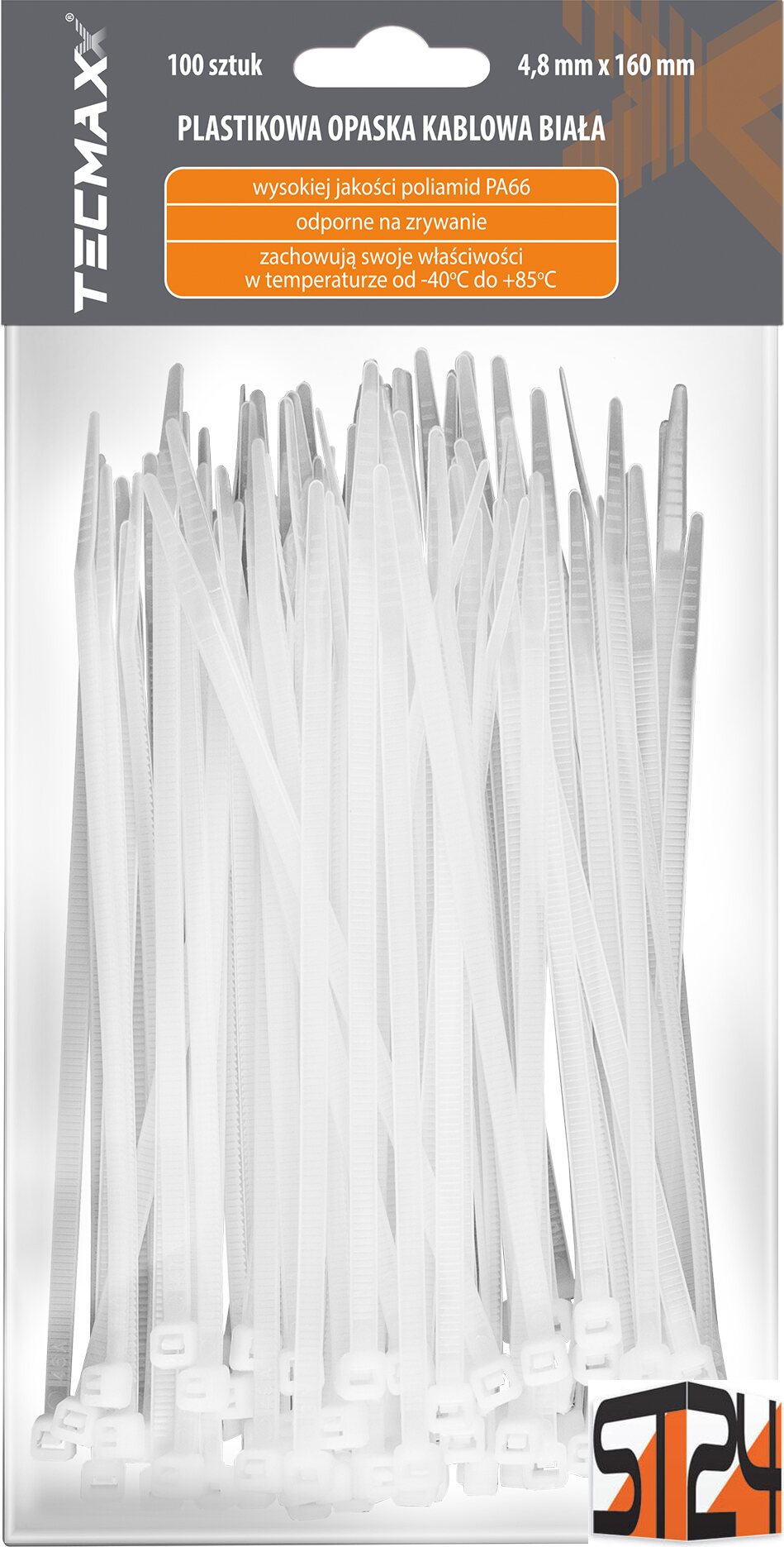 Product descriptionTECMAXX Cable Ties 4.8 mm x 160 mm, white – Professional strength and secure hold for installations.