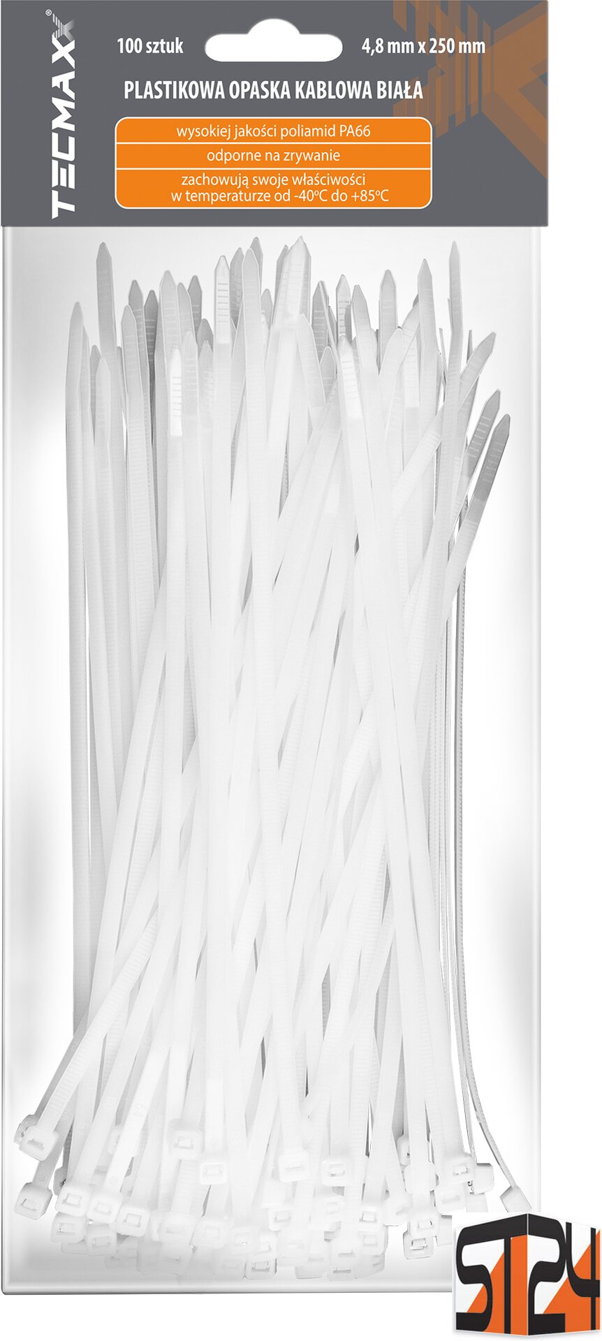 Product descriptionTECMAXX Cable Ties 4.8 mm x 500 mm, white – Reliable durability for demanding fastening.