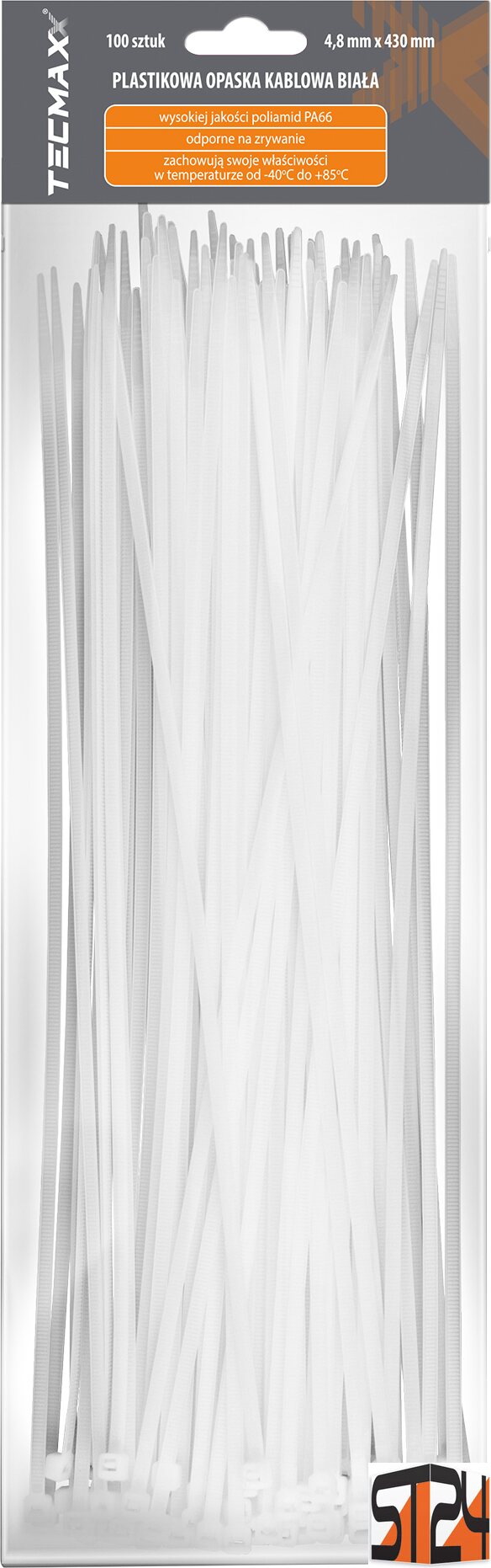 Product descriptionTECMAXX Cable Ties 4.8 mm x 370 mm, white – Reliable durability for demanding fastening.