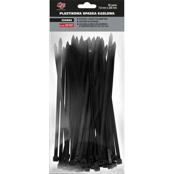 When you need absolute reliability and high tensile strength, the MA Professional 7.6 mm wide cable tie is the right tool. This 250 mm long tie is specially designed for heavy equipment, machine installations and applications where the fastening must withstand strong vibrations and pull. The wide profile distributes the clamping force more evenly, while protecting hoses and cables from damage.