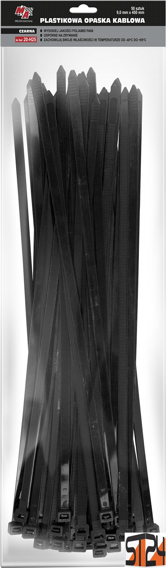 MA Professional cable ties are designed for applications where higher tensile strength and durability are required. These 9.0 mm wide and 450 mm long ties are ideal for securing heavier cable bundles, hoses and other components in car repair shops, industry and demanding home conditions.