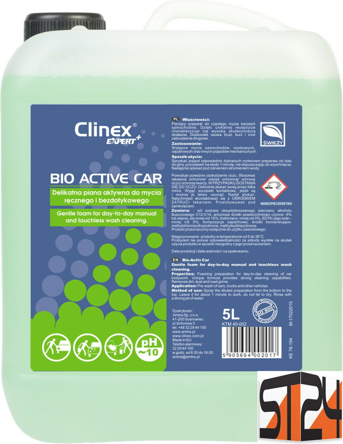 DescripciónCLINEX Expert+ Bio Active Car 5 l – Espuma activa de alto rendimiento y calidad profesional para el lavado regular de vehículos.