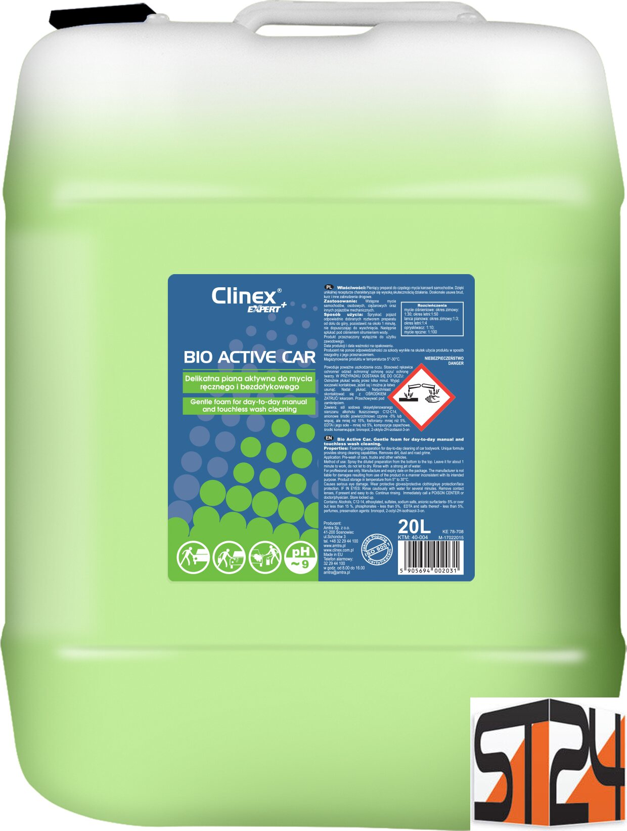 DescripciónCLINEX Expert+ Bio Active Car 20 l – Tamaño industrial para el lavado profesional y continuo de vehículos.