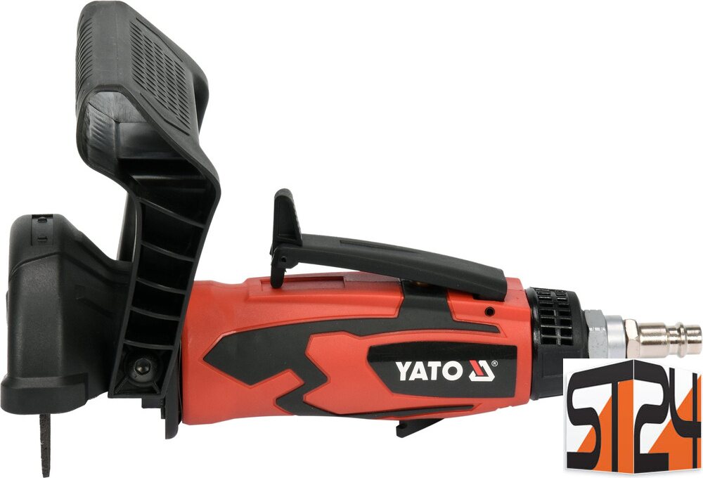 Tämä ammattikäyttöön suunniteltu paineilmatoiminen katkaisulaite on ihanteellinen työkalu metallin, korinosien ja ohutlevyjen leikkaamiseen. Kevyt komposiittirunko tekee siitä miellyttävän käyttää, ja kompaktin kokonsa ansiosta työskentely on helppoa myös ahtaissa tiloissa. . Laitteen ominaisuuksiin kuuluvat portaaton nopeudensäätö ja 360° kääntyvä ilmanpoisto, mikä parantaa käyttömukavuutta ja turvallisuutta. Turvakytkin estää tahattoman käynnistymisen.
