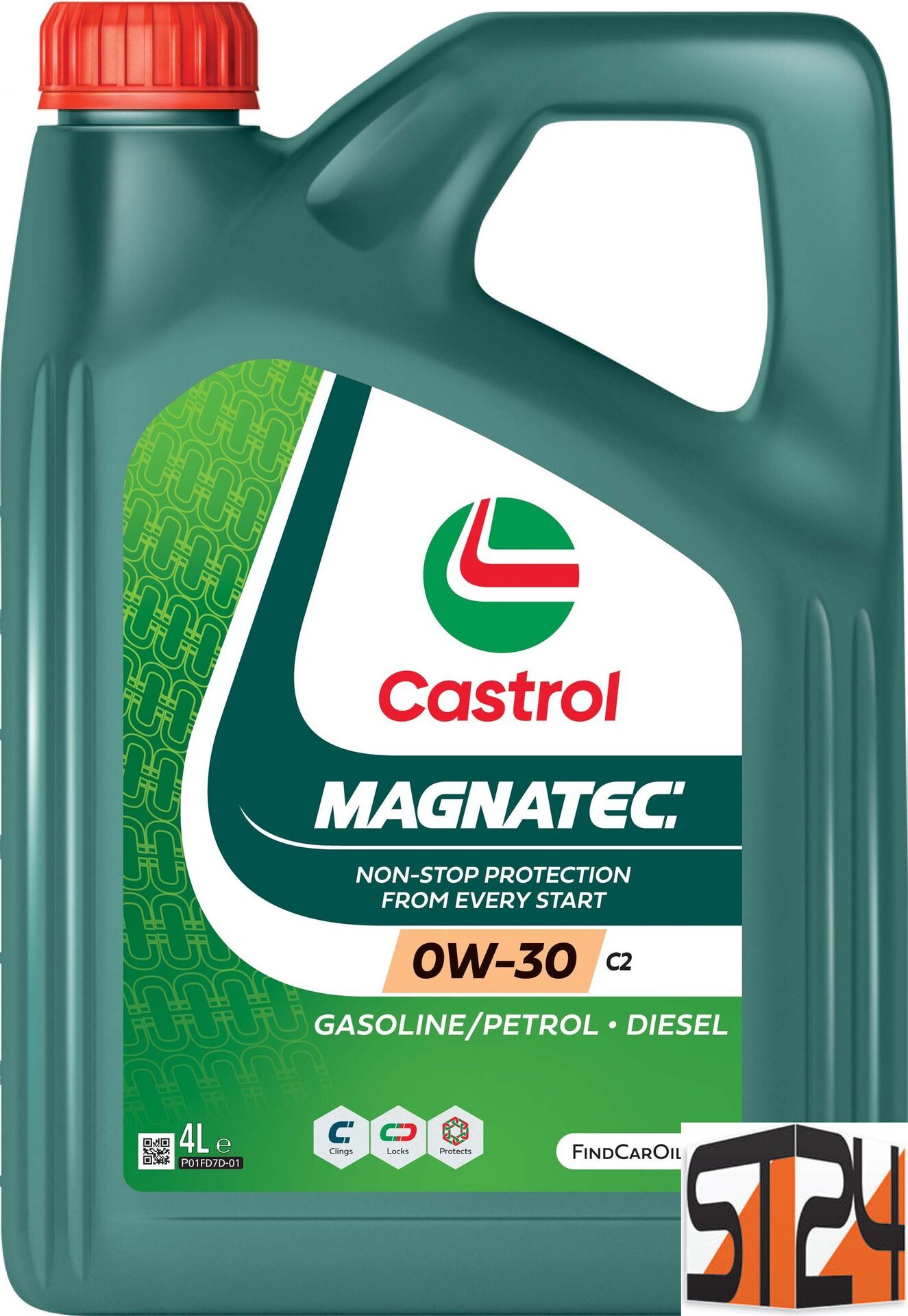 CASTROL Magnatec 0W-30 C2 (4L) er en helsyntetisk motorolje med lavt SAPS-innhold. Dens intelligente molekyler gir kontinuerlig motorbeskyttelse. Utviklet for motorer som krever C2-klassifisering, spesielt de som er utstyrt med DPF-filtre.