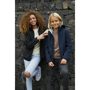 Lasten softshell-takki jossa 3 vetoketjullista ulkotaskua ja 2 sisätaskua. Käänteinen YKK-vetoketju sävysävyyn. Joustava nauha hihansuissa helmassa. Irrotettava huppu.