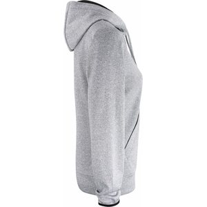 Urheilullinen tekninen huppari, jossa etutasku ja vetoketjullinen piilotasku. Hupussa on verkkovuori ja kiristysnyöri. Hihansuissa ja helmassa resorit.