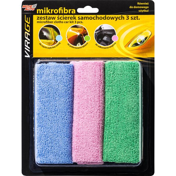 MOJE AUTO VIRAGE mikrokuituliinasetti on täydellinen ratkaisu auton kokonaisvaltaiseen puhdistukseen ja huoltoon.