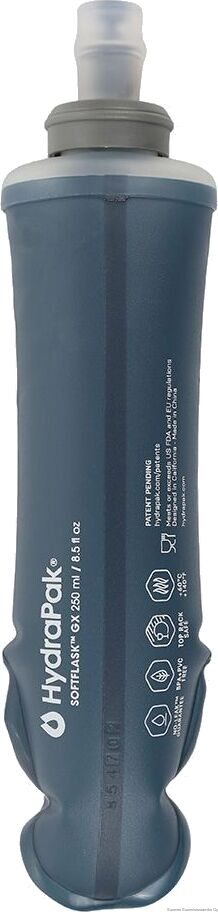 250 ml kokoontaitettava juoksupullo, joka voidaan täyttää nesteellä tai geeleillä. Purista juotavaksi tai syö sisältö