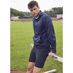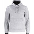 Urheilullinen tekninen huppari, jossa etutasku ja vetoketjullinen piilotasku. Hupussa on verkkovuori ja kiristysnyöri. Hihansuissa ja helmassa resorit.