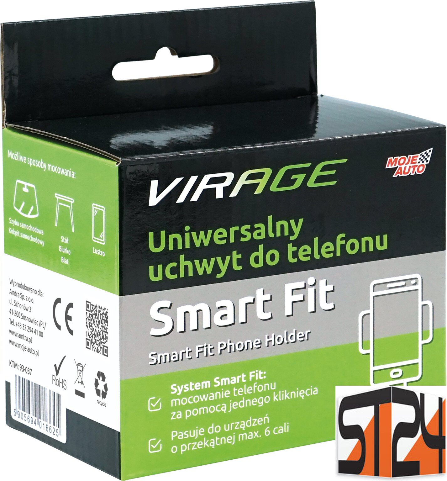 ProduktbeskrivningSuitable for devices with a max. diagonal 6 in. The ?Smart Fit? system allows for attaching the phone quickly with just one click. For fitting both on windshields and dashboards. The non-slip inner surface protects the phone against shifting