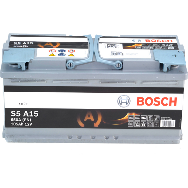 Bosch S5A 15 är flaggskeppet i AGM-serien med en kapacitet på 105 Ah och hela 950 A. Detta batteri är utformat för de mest krävande premiumbilarna med toppmoderna elsystem. Den är helt underhållsfri och erbjuder exceptionell trygghet i de tuffaste väderförhållandena.